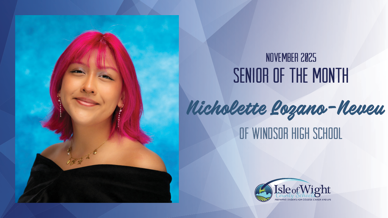 Nicholette stands out as an outstanding student whose academic excellence, intellectual curiosity, and personal growth set her apart. She has consistently demonstrated a deep commitment to learning, excelling in rigorous subjects, especially math, science, and history—through hard work, focus, and a genuine love of discovery. Her academic success is matched by her involvement in school life. Through her participation in VHSL Theatre and BETA Club, Nicholette balances analytical thinking with creativity, empathy, and leadership. Her work on stage has helped her come out of her shell and connect more deeply with others, while her service in BETA reflects her dedication to teamwork and community. In the classroom, Nicholette’s curiosity shines through her achievements in Chemistry and Physics, where she consistently applies thoughtful analysis and precision in her work. She has taken and excelled in numerous Advanced Placement and Dual Enrollment courses, all while supporting her classmates and contributing to a positive, encouraging learning environment. Her teacher, Scott Graham, shared these words about her: “Nicholette is a remarkable young lady who excels in everything she does. She has taken and excelled in a remarkable number of dual enrollment and AP courses over her academic career, and is always there to help other students in her class. Nicholette makes Windsor a better place.” After graduation, Nicholette hopes to attend the University of Virginia, where she plans to study Astrophysics.